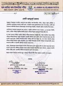আল্লাহ তাআলা আমাদের সকলকে সুস্থ ও শান্তিপূর্ণ পরিবেশে দ্বীনি শিক্ষা অর্জনের তাওফীক দান করবেন।